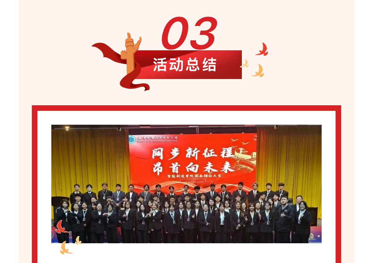 随着合影留念的快门声响起,2025年智能制造学院团委聘任大会圆满结束。新起点,新征程,相信在学院领导的关怀指导下,在学生干部的带领与全体干事的共同努力下,智能制造学院团委将以更加昂扬的姿态、更加务实的作风,凝聚青春力量,书写属于智能制造青年的崭新篇章!