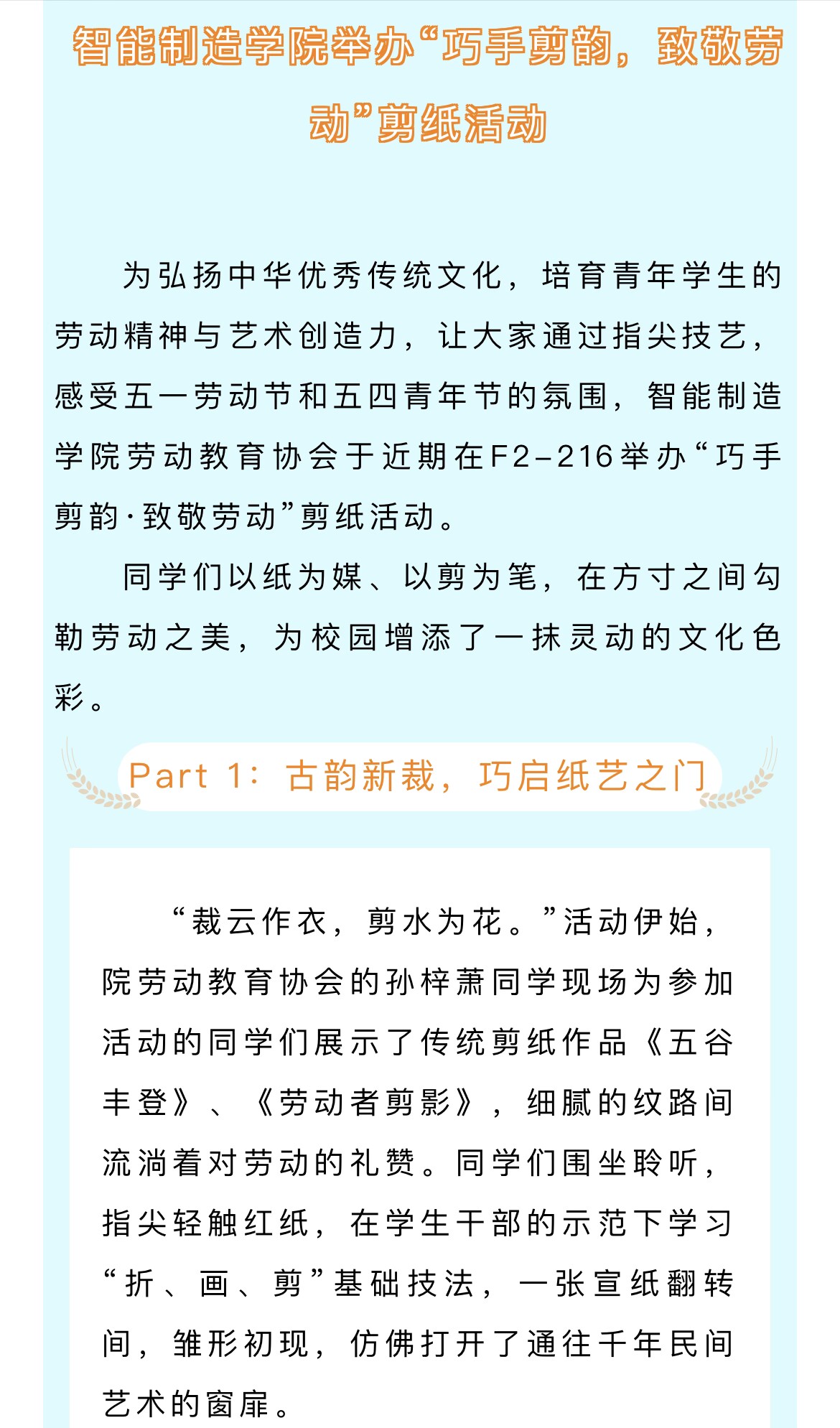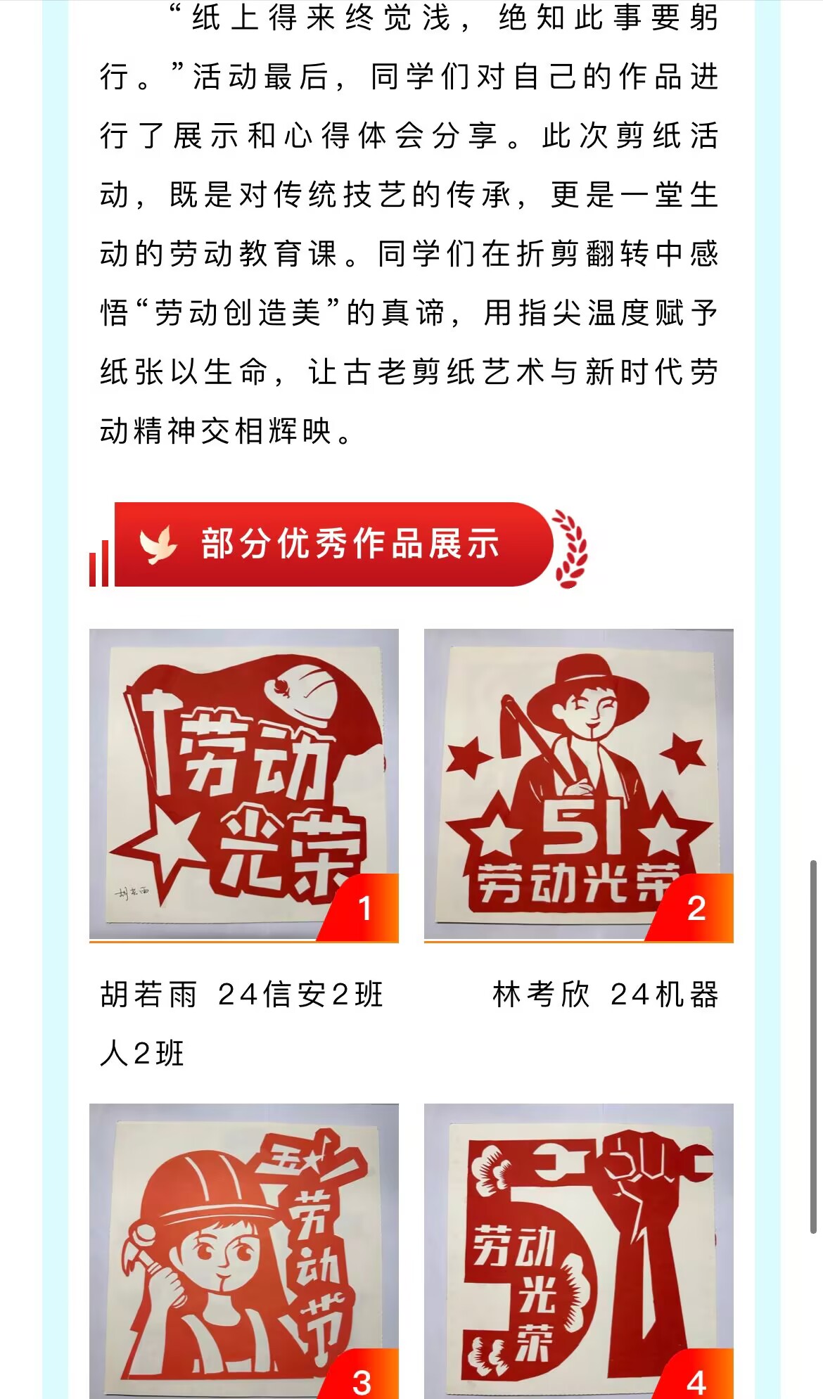巧手传匠心,青春敬劳动 | 智能制造学院举办“巧手剪韵,致敬劳动”剪纸活动