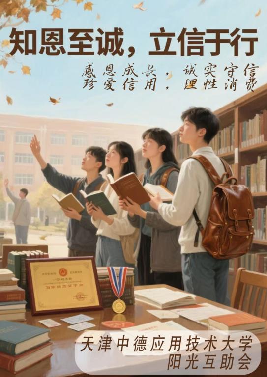 这张温暖的网,既是助学金、助学贷款等物质支持的载体,更是 “受助思源、诚信感恩” 的精神纽带。当奖助学金化作激励卓越的星光,当助学贷款成为托举梦想的桥梁,每一笔资助都承载着社会的信任,需要以诚信履约的行动去回应:按时归还贷款是对规则的敬畏,如实申报信息是对责任的坚守,用奋斗回馈善意更是对诚信的最佳诠释。如今,资助政策已不仅是经济保障,更成为培育诚信品格的土壤,让每位学子在获得支持的同时,将诚信的种子播撒进青春的征程,让梦想在诚信的护航中绽放光芒。实现个人与社会价值。