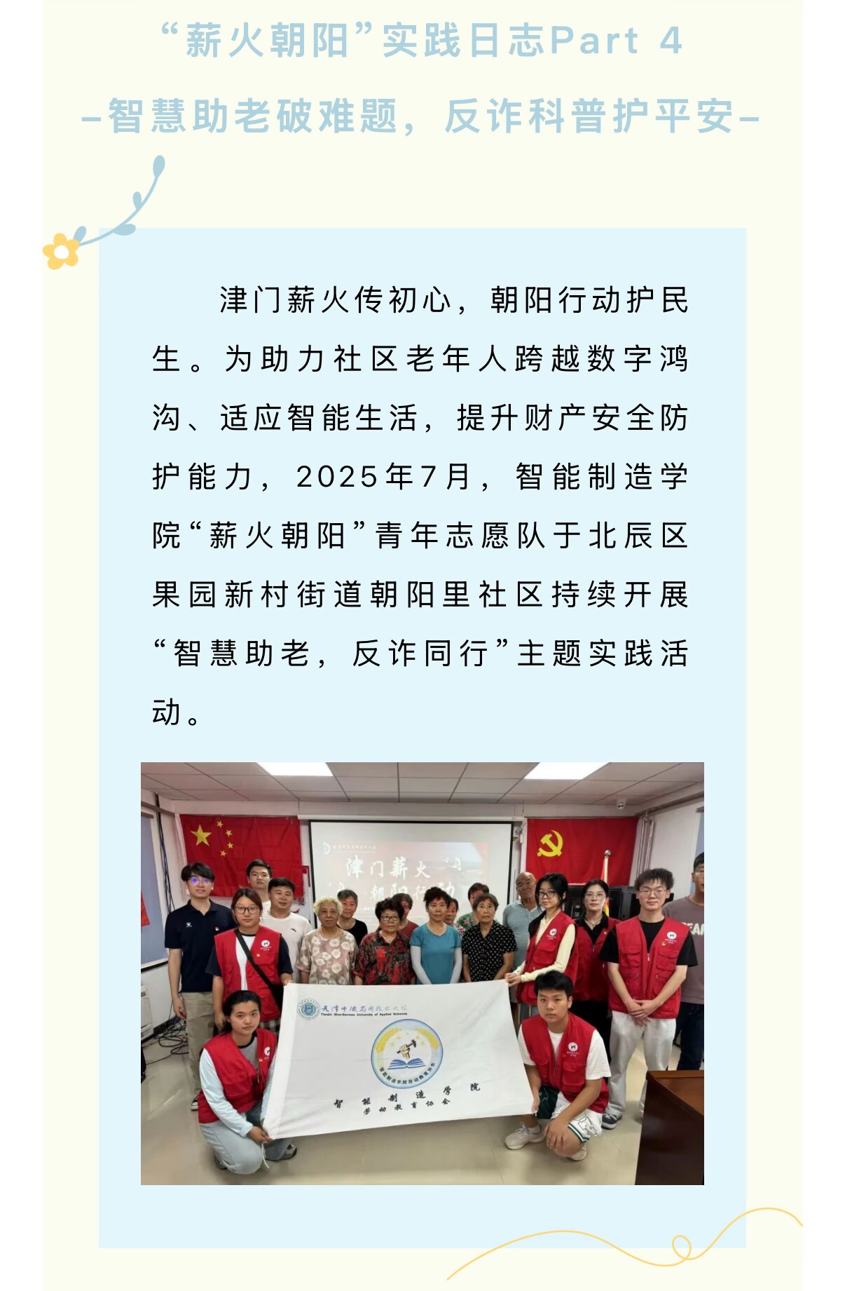 “薪火朝阳”实践日志Part 4 | 智慧助老破难题,反诈科普护平安