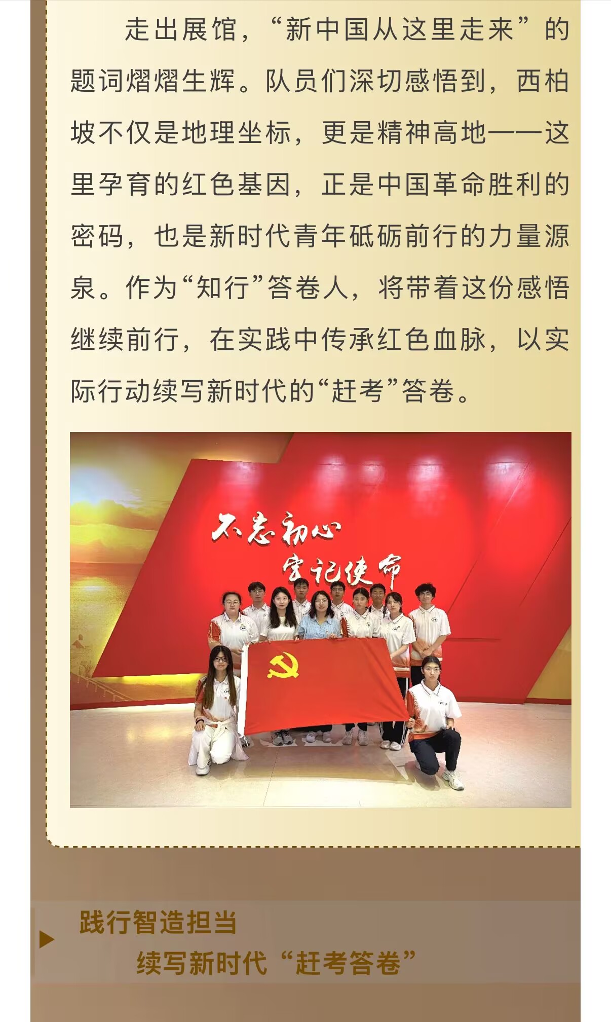 行走的思政课|京津冀红色基因与科创动能双驱育人实践——智能制造学院“知行”答卷人实践队暑期社会实践活动第一阶段“赶考路求新知”