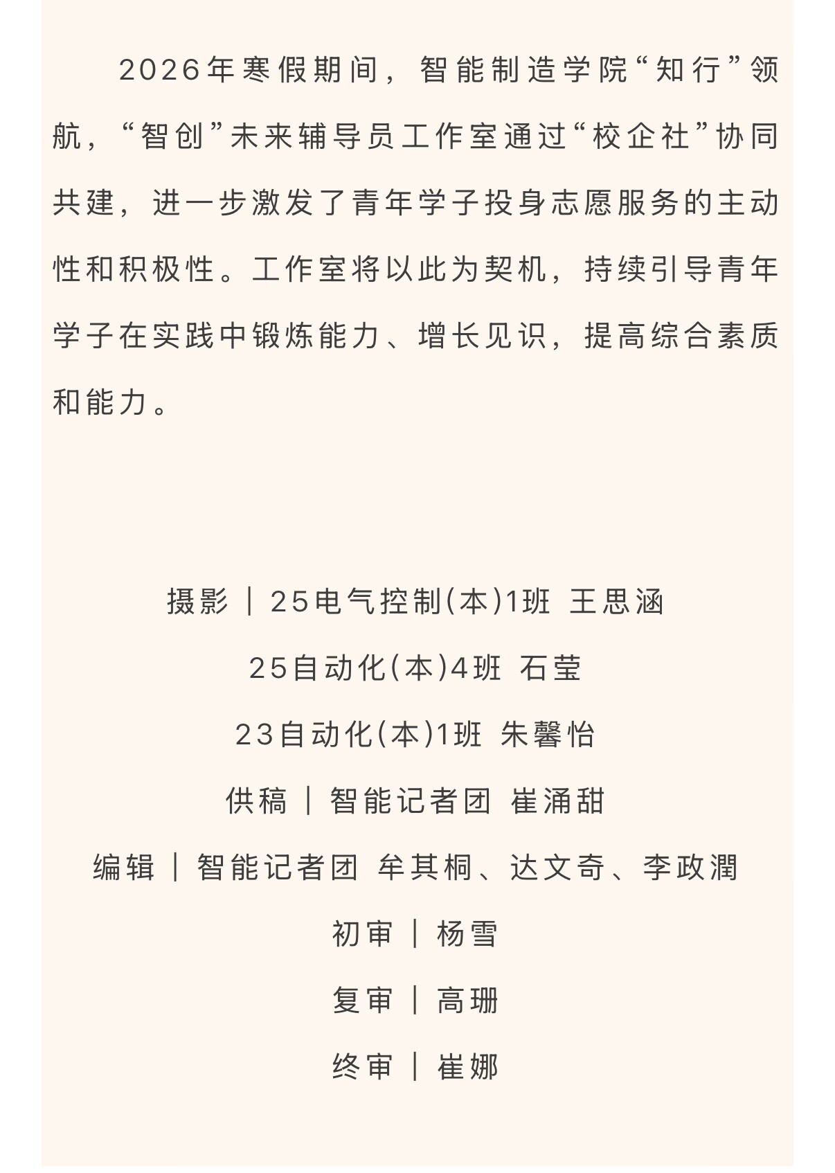 智能榜样 | 2026年寒假社会实践——志愿者风采展示
