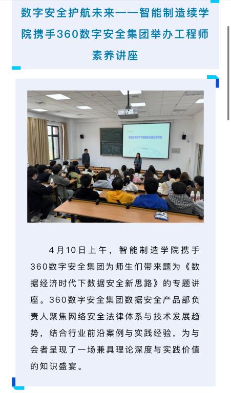 就业工作 | 数字安全护航未来——智能制造学院携手360数字安全集团举办工程师素养讲座