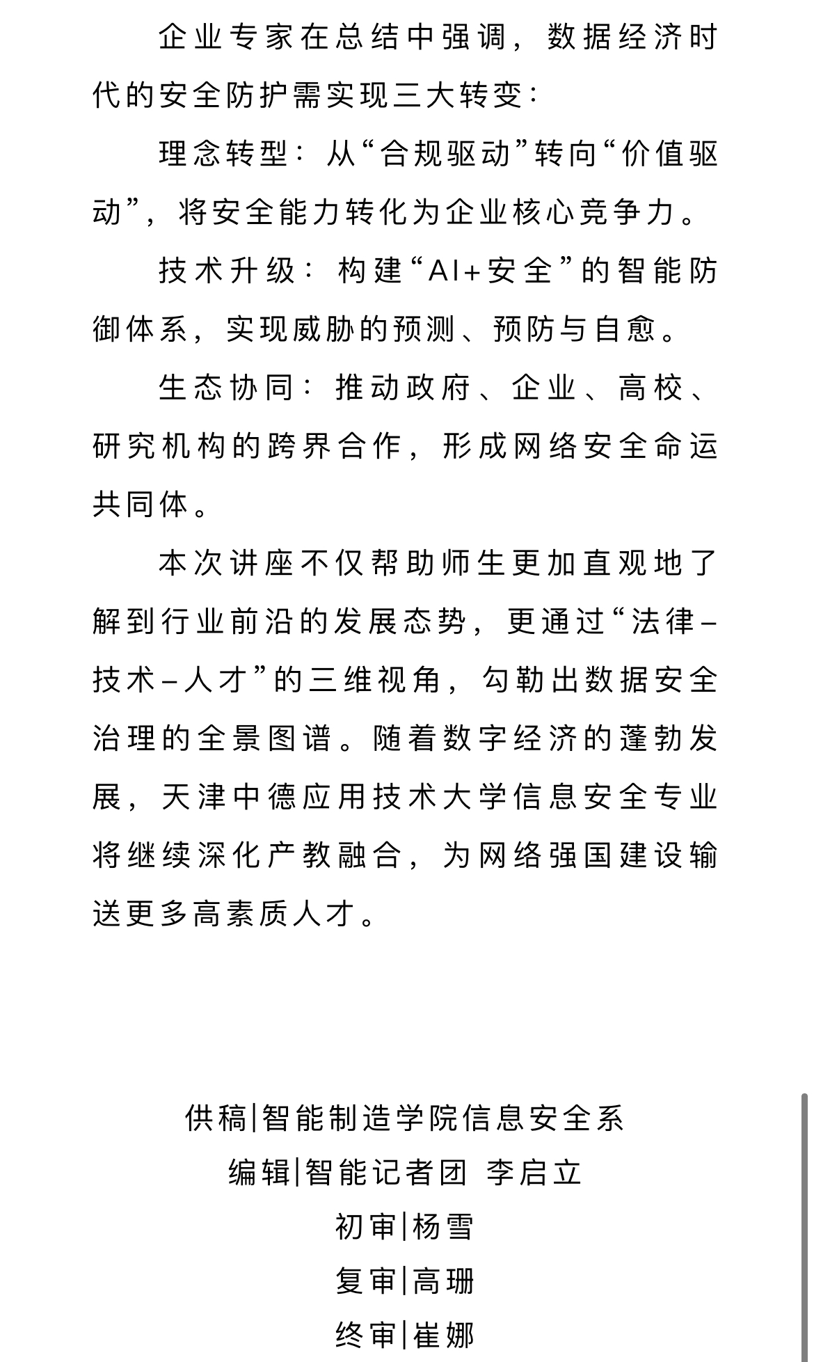 就业工作 | 智能制造学院举办信息安全专业工程师素养讲座