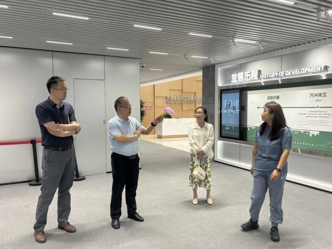 访问期间,赵相宾院长一行在天津食品供应链集团副总经理及研发中心团队的陪同下,参观了企业的物流仓储、鱼类加工及工业互联网二级节点技术平台,并开展了座谈会。