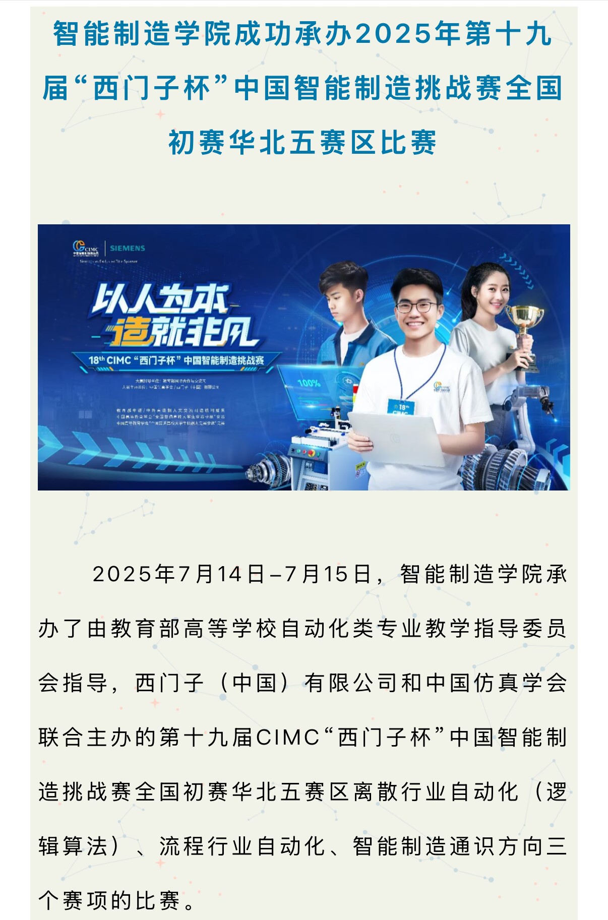 智能制造学院成功承办2025年第十九届“西门子杯”中国智能制造挑战赛全国初赛华北五赛区比赛